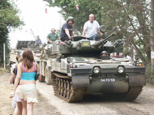 43. Вечерние покатушки. Народ мотается друг к другу в гости на экспонатах. Территория выставки значительная и пешком не находишься. Есть специально отведенный полигон,где за 10 фунтов можно погонять на танке или другой бронетехнике по оврагам, грязи, трамплинам и т.д.
