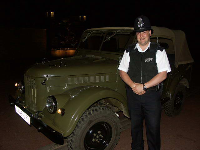 35. Рон, мастер по лифтам - один из пяти (в Великобритании) счастливых обладателей ГАЗ-69А. Полнейшая комплектация по версии армии ГДР, включая желтые поворотники. Три года упрашивал своего друга продать машину. Уговорил за 5000 фунтов. Состояние очень хорошие, но список желаемых запцацек таки написал.