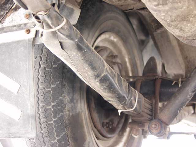 Особых претензий к ним не было. Износ шин равномерный, увода и рыскания нет. Криминальных стуков и скрипов не прослушивается. Но имеет место разлохмачивание резиновых пыльников, натянутых поверх металлических на наконечниках рулевых тяг, а так же ощущение люфтов (подвеска дышит). Имеются в наличии два новых крайних наконечника от УАЗа в сборе. А так же изношенный стопорный штифт шкворня с правой стороны.